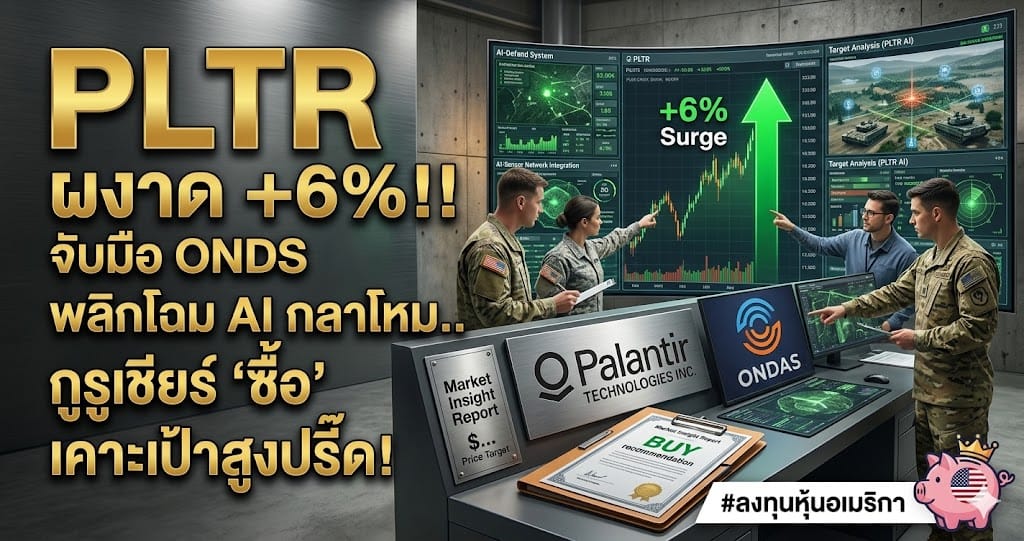 • PLTR ผงาด +6%!! จับมือ ONDS พลิกโฉม AI กลาโหม.. กูรูเชียร์ "ซื้อ" เคาะเป้าสูงปรี๊ด!